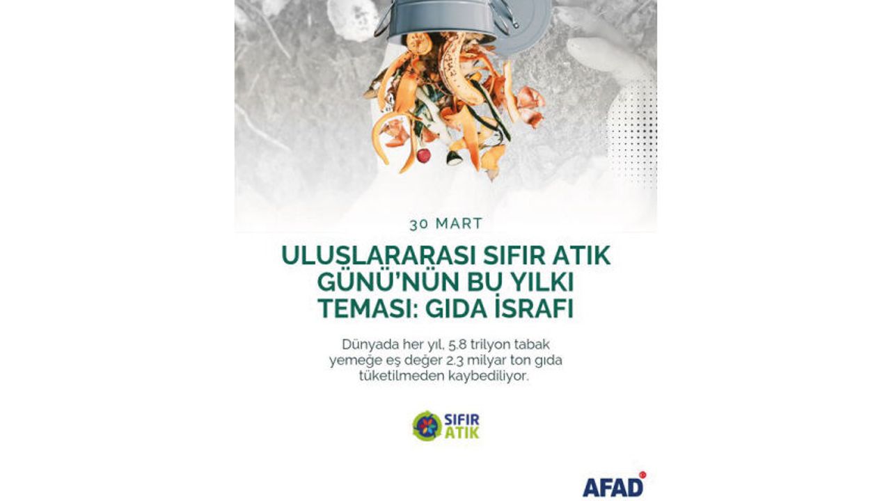 30 Mart #UluslararasıSıfırAtıkGünü kutlu olsun. Sayın Emine Erdoğan Hanımefendinin öncülüğünde başlatılan ve küresel bir çevre hareketine dönüşen Sıfır Atık Hareketi’nin bu yılki teması Gıda İsrafı. 30 Mart Uluslararası Sıfır Atık Günü vesilesiyle, dünyamızda her yıl 5.8 trilyon tabak yemeğe eş değer 2.3 milyar ton gıdanın tüketilmeden kaybedildiğine dikkat çekiyor; insani, vicdani ve kültürel sorumluluklarımız gereği gıda israfını engellememiz gerektiğini önemle hatırlatıyoruz. Daha temiz ve müreffeh bir dünya için, #SıfırAtık #AFAD