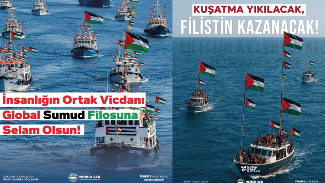 Akdeniz insanlığın onurlu yürüyüşüne şahitlik ediyor! Global Sumud Filosu, Gazze’ye yalnızca yiyecek ve ilaç değil… İnsanlığın vicdanını, onurunu ve direniş iradesini taşıyor! Ve bu sefer sadece birkaç gemi değil… Filistin’in yanında dimdik duran, 44 ülkeden binlerce aktivistin katılımıyla , 50’den fazla gemi ile bu yolculukta buluşuyor! Barselona’dan, Cenova’dan, Sicilya’dan, Tunus’tan kalkan gemiler,Dünyanın dört bir yanından gelen destekle Akdeniz’in kalbinde birleşiyor! Katil İsrail bilsin ki: Ne abluka, ne barikat, ne de zulüm insanlığın vicdanını susturamaz! Bu sefer, yalnızca bir yardım seferi değil… İnsanlığın tarih önünde verdiği onur imtihanıdır! Buradan dünyaya ilan ediyorum: Gazze yalnız değildir! Soykırıma karşı susmak, insanlığın kara lekesidir! Zulme karşı direniş, insanlığın namus borcudur! Gazze’ye özgürlük,umut ve direnişi taşıyan, Global Sumud Filosunun bu kutlu seferi gururla selamlıyor… Gazze’nin yanında, insanlığın ön safında duruyoruz! Gazze kazanacak! İnsanlık kazanacak! Zalim kaybedecek, vicdan galip gelecek! Nehirden denize Filistin özgür olacak…