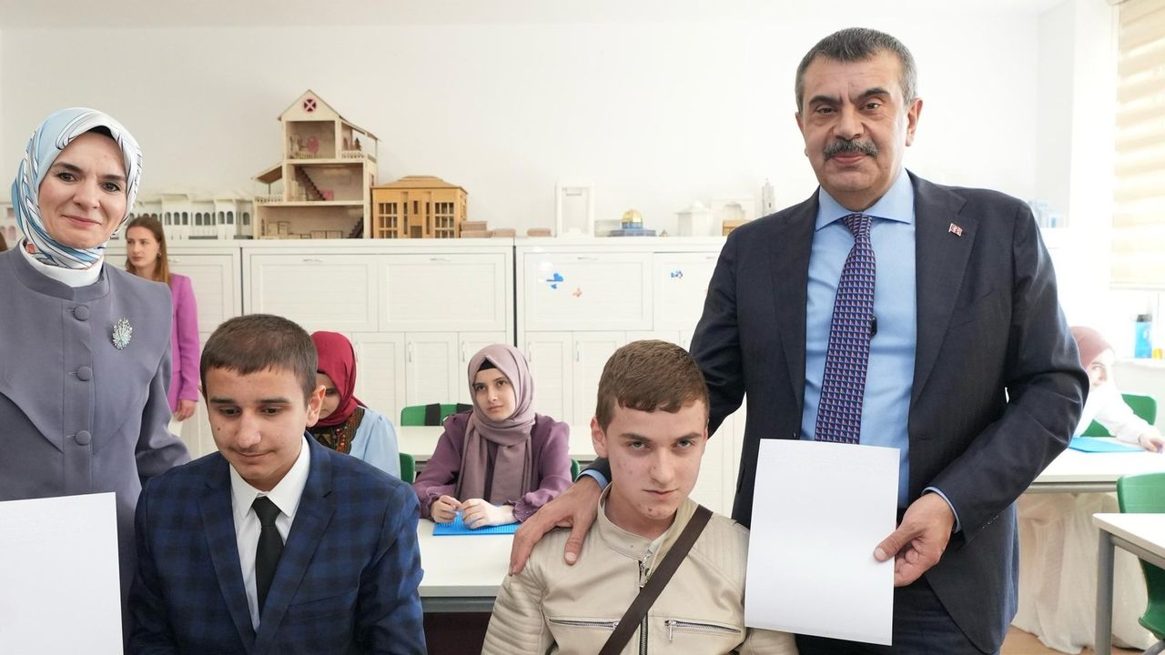 Daha sonra sınıfları gezen iki Bakan, öğrencilerle sohbet edip talepleri dinledi. Görme engelli bir öğrencinin Kur'an-ı Kerim tilavetinin ardından öğrenciler Bakanlara ilahi ve türkü söyledi.