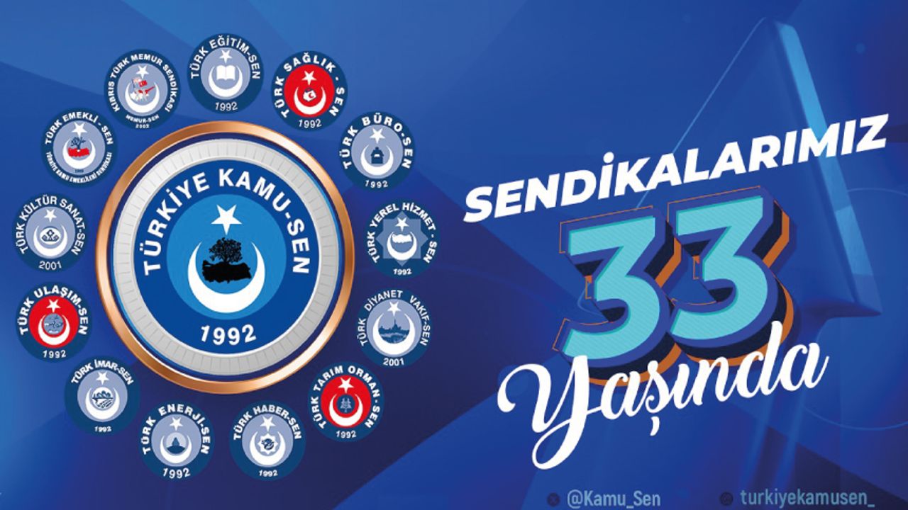 "Türkiye Kamu-Sen’i var eden kıymetli sendikalarımızın kuruluş yıldönümünü ve milletimizin öz değerlerinden, vatan ve millet sevgisinden, milli birlik ve beraberlik anlayışından taviz vermeden sürdürülen sendikal mücadelemizin 33. yılını gururla kutluyoruz.
