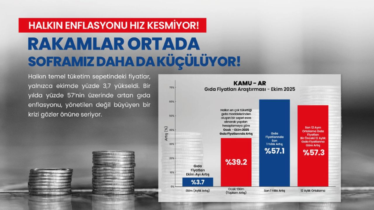 Birleşik Kamu-İş Konfederasyonu Ar-Ge birimi KAMUAR’ın fiyatlarını Türkiye’nin büyük bir bölümünde yaygın şubeleri bulunan zincir marketlerden derlediği ve halkın en fazla tükettiği 64 temel gıda maddesinden oluşan bir sepeti esas alarak hesapladığı gıda fiyatları endeksinin Ekim 2025 sonuçları açıklandı.
