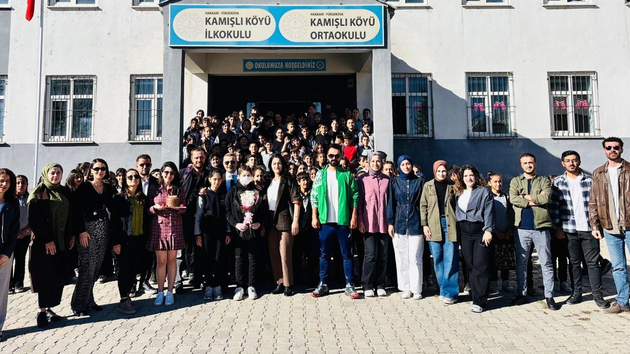 Öğrencilerin oluşturduğu kortejin arasından alkışlar eşliğinde okulun bahçesine gelen Aktan, burada öğretmenleri ve arkadaşları tarafından pasta ve çiçeklerle karşılandı.
