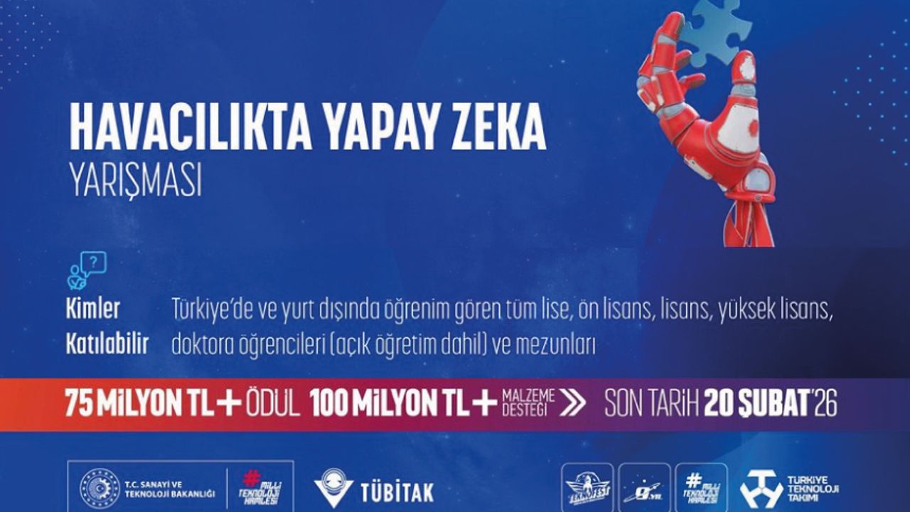 Son başvuru tarihi: 20 Şubat 2026 Detaylar: https://teknofest.org/tr/yarismalar/havacilikta-yapay-zeka-yarismasi/