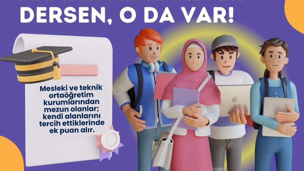 Sevgili Gençler, Biliyor muydunuz? Mesleki ve teknik ortaöğretim kurumlarından mezun olan öğrenciler, kendi alanlarındaki programları tercih ettiklerinde ek puan avantajına sahip oluyor! Hayallerindeki kariyere bir adım önde başlamak senin elinde. Detaylı bilgi için: http://meslegimhayatim.meb.gov.tr http://mtegm.meb.gov.tr