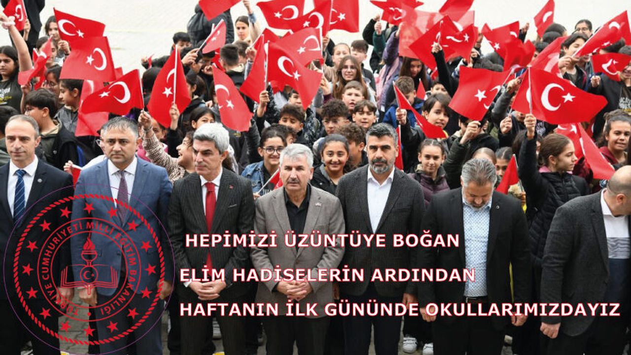 Hepimizi üzüntüye boğan elim hadiselerin ardından haftanın ilk gününde okullarımızdayız. Eğitim ailesi olarak şimdi bize düşen, toprağa umudun tohumlarını yeniden ekmektir. Evlatlarımızın huzurunu sükûnetle inşa etmek, çocuklarımızın gözlerinde parıldayan o ışığı korumak Bakanlık olarak sorumluluğumuzdur. Bilinmelidir ki evlatlarımızın güvenliği konusunda en küçük bir tavize izin vermeyeceğiz. Çocuklarımızın insani değerlerini, devletimizle ve bu aziz milletle olan güçlü bağlarını kaybetmesine müsaade etmeyeceğiz. Bu inanç ve gayretle, Türkiye’nin millî birliğinin ve beraberliğinin her daim korunması için el birliğiyle, dayanışma içinde çalışmalarımızı sürdürüyoruz. Eğitimin yükünü omuzlayan, şefkati ve özverisiyle yarınlarımız için yorulmak nedir bilmeden çalışan kıymetli öğretmenlerimizin emeği ülkemizin geleceğidir. Bu sabah ellerinde ay-yıldızlı bayraklarımızla okullarımızı bir kenetlenme alanına çeviren meslektaşlarımıza, velilerimize ve sendikalara şükranlarımı sunuyorum. Şanlı bayrağımızın gölgesi; birliğimizin, beraberliğimizin ve evlatlarımıza hep birlikte sahip çıkma kararlılığımızın en büyük nişanesidir. Hepimizi derinden üzen bu elim hadiselerde kaybettiğimiz canlarımıza yüce Allah’tan rahmet, yakınlarına sabır diliyor; hadiselerden etkilenen değerli vatandaşlarımıza, tüm ailelerimize, bilhassa sevgili yavrularımıza geçmiş olsun dileklerimi iletiyorum. Her şeyin en iyisine layık olan evlatlarımıza ve onlara rehberlik eden öğretmenlerimize hayırlı haftalar diliyorum.