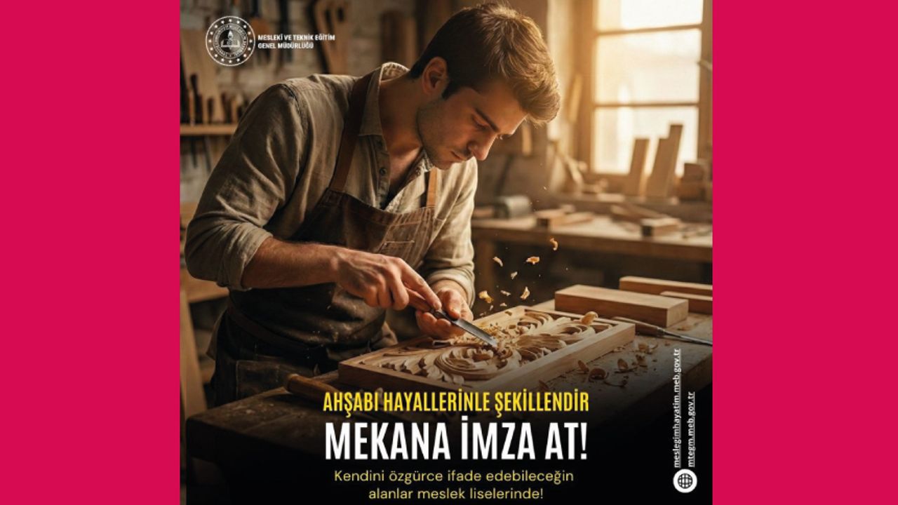 Sevgili Gençler, Emeğin hayat bulduğu yerde, gelecek yeniden şekillenir. Her talaş zerresi, bir ustalığın; her çizgi, bir hayalin hayat bulmuş hâlidir. Hayaline yön ver, mekâna imzanı at. Geleceğini kendi ellerinle inşa etmeye hazır mısın? http://meslegimhayatim.meb.gov.tr http://mtegm.meb.gov.tr