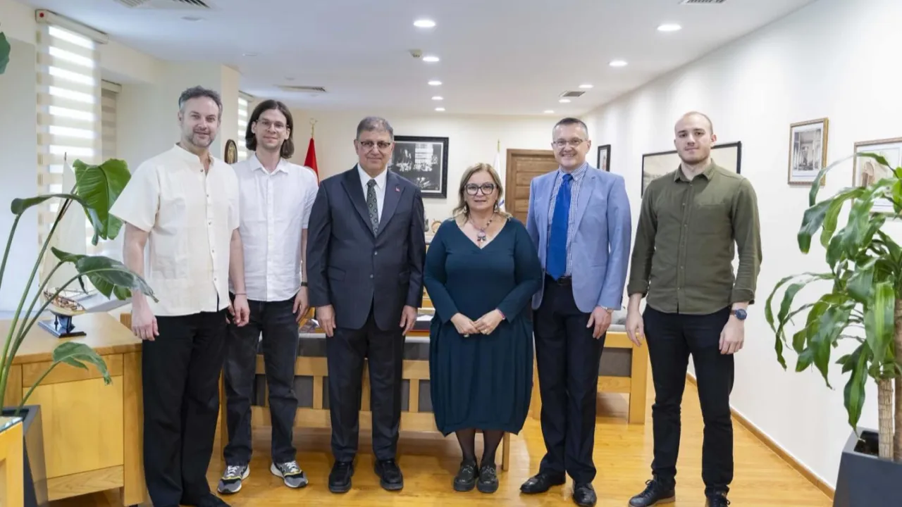 İzmir Büyükşehir Belediye Başkanı Dr. Cemil Tugay, 26. Uluslararası Bayındır Çiçek Festivali kapsamında İzmir’e gelen Hırvat Türk Dostluk Derneği Başkanı, İzmir Akdeniz Akademisi Akademi Kurulu Üyesi Goran Beus Richembergh ve Hırvat Klarnet Dörtlüsü sanatçılarını ağırladı.İZMİR (İGFA) - Bu yıl 26. kez düzenlenen Uluslararası Bayındır Çiçek Festivali için kente gelen Hırvat Türk Dostluk Derneği Başkanı, İzmir Akdeniz Akademisi Akademi Kurulu Üyesi Goran Beus Richembergh ve Hırvat Klarnet Dörtlüsü sanatçıları, İzmir Büyükşehir Belediye Başkanı Dr. Cemil Tugay’ı makamında ziyaret etti. Görüşmede, iki ülke arasındaki dostluk ilişkileri ve iş birliklerinin geliştirilmesi gündeme geldi.