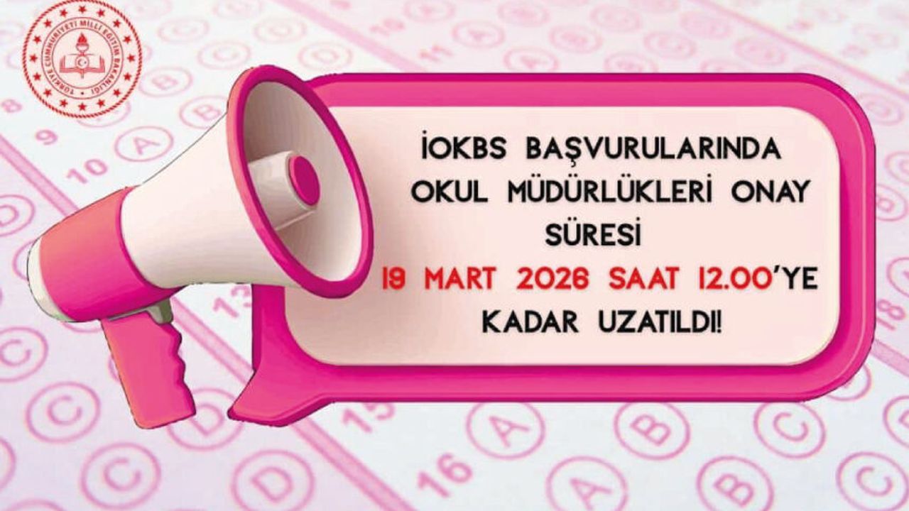 Millî Eğitim Bakanlığı tarafından yürütülen İlköğretim ve Ortaöğretim Kurumları Bursluluk Sınavı (İOKBS) başvuru sürecinde, okul müdürlükleri tarafından gerçekleştirilecek başvuru onay işlemlerinin tamamlanması için tanınan süre güncellendi. Daha önce 13 Mart 2026 olarak duyurulan onay işlemlerinin son tarihi, yapılan düzenleme ile 19 Mart 2026 Perşembe günü saat 12.00'ye kadar uzatıldı.
