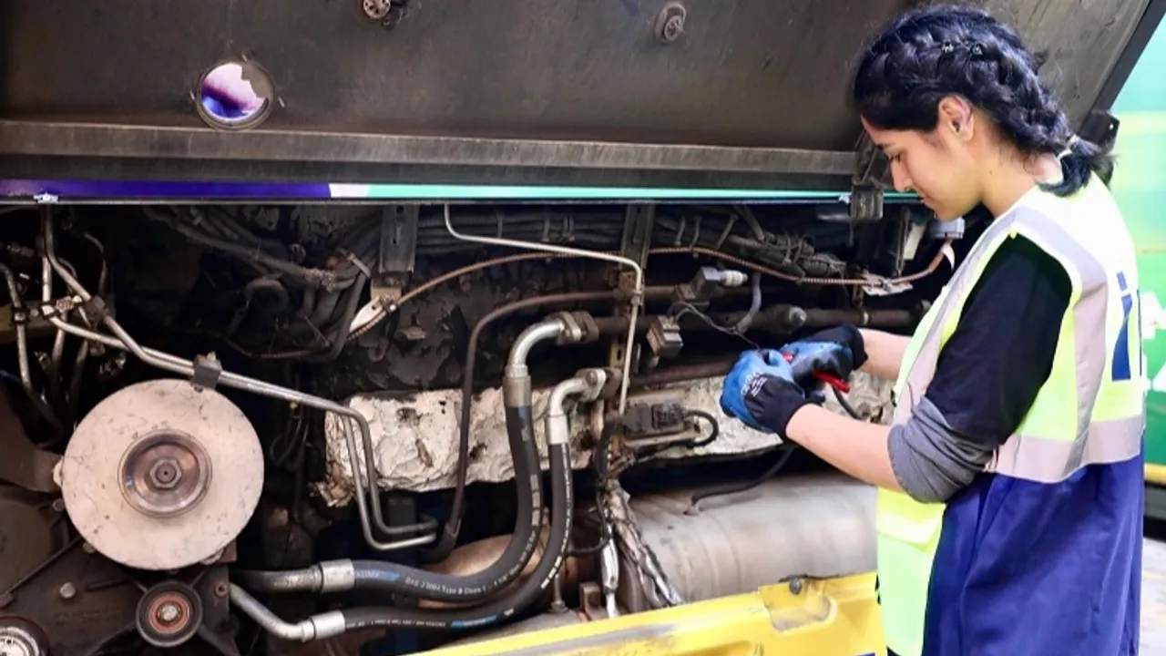 İETT, İstanbul’da bir ilke daha imza attı. Şehrin toplu ulaşımında en büyük role sahip olan belediye otobüslerinin bakım onarım görevinde kadınlar görev almaya başladı.İSTANBUL (İGFA) - İstanbul Büyükşehir Belediyesi’nin köklü kuruluşu İETT, 2019 yılından itibaren kadrosunda cinsiyet eşitliğini sağlamak için çalışıyor. İstanbullunun ulaşımını sağlayan İETT, şehirde hizmet veren tüm toplu taşıma otobüslerinin, metrobüs sisteminin, tarihi tünelin ve nostaljik tramvayın işletmesini ve bakım – onarımını da gerçekleştiriyor.