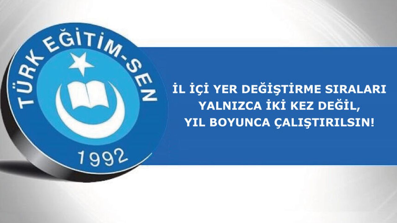 Öğretmenlerin İl İçi İsteğe Bağlı Yer Değiştirme Duyurusu “İl içi isteğe bağlı yer değişikliği sonrasında tercihleri doğrultusunda ataması yapılamayan öğretmenler istemeleri halinde ilk iki tercihinde yer alan eğitim kurumlarında hizmet puanı üstünlüğüne göre sıraya alınır.” denilmektedir.İl içi isteğe bağlı yer değiştirme sürecinde sıraların yalnızca iki kez çalıştırılması ve sıraya alınan okul sayısının sınırlı tutulması talepleri karşılamada yetersiz kalmakta ve mağduriyetlere neden olmaktadır.Bu kapsamda; İl içi isteğe bağlı yer değiştirme sıralarının yalnızca iki kez değil, yıl boyunca belirli periyotlarla işletilmesi, yıl içinde boşalan kadroların sıralar üzerinden değerlendirilmesi hususlarında gerekli düzenlemelerin yapılması için Milli Eğitim Bakanlığına yazılı talepte bulunduk.