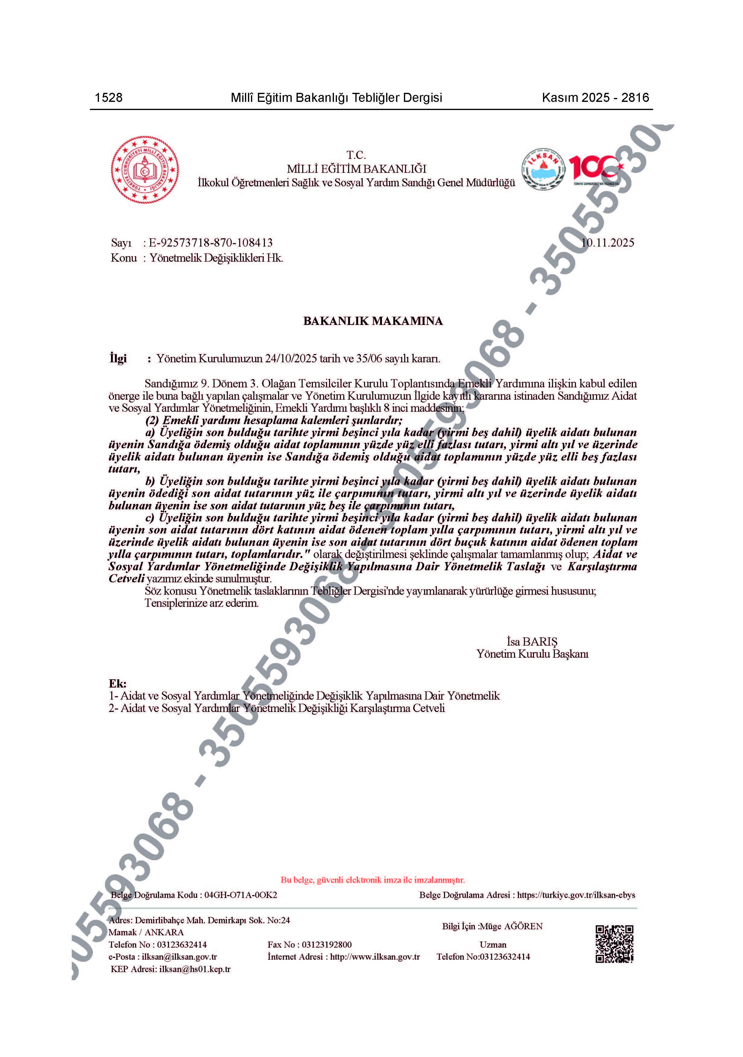 İLKSAN’ın gelir kaynakları genişletilerek emekli yardımında kademeli artış sürecinin ilk adımı Hesaplama Cetvelinde yapılan düzenleme ile 10.09.2025 Tarih ve 2814 Sayılı Tebliğler Dergisinde yayınlanmıştı.