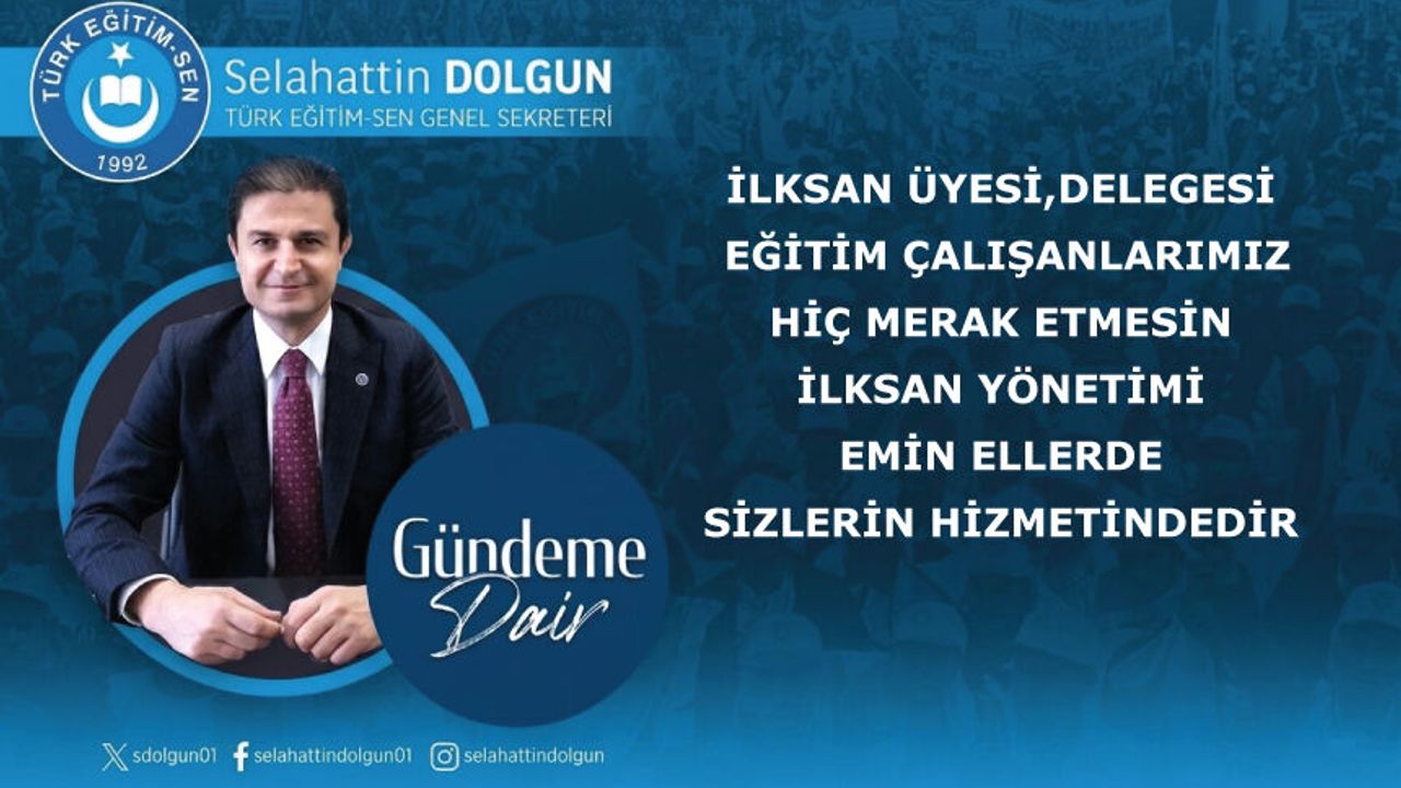 İlksan üyesi,delegesi eğitim çalışanlarımız hiç merak etmesin İlksan yönetimi emin ellerde,sizlerin hizmetindedir. Tüm eğitim çalışanlarımız müsterih olsun. Biz Türk Eğitim-Sen Genel Merkezi olarak İlksan yönetiminde işleyişinde herhangi bir olumsuzluk gördüğümüzde müdahil olur, gerekeni yaparız. Maymuna soba yakmayı öğretmişler,yazında yakmış.!
