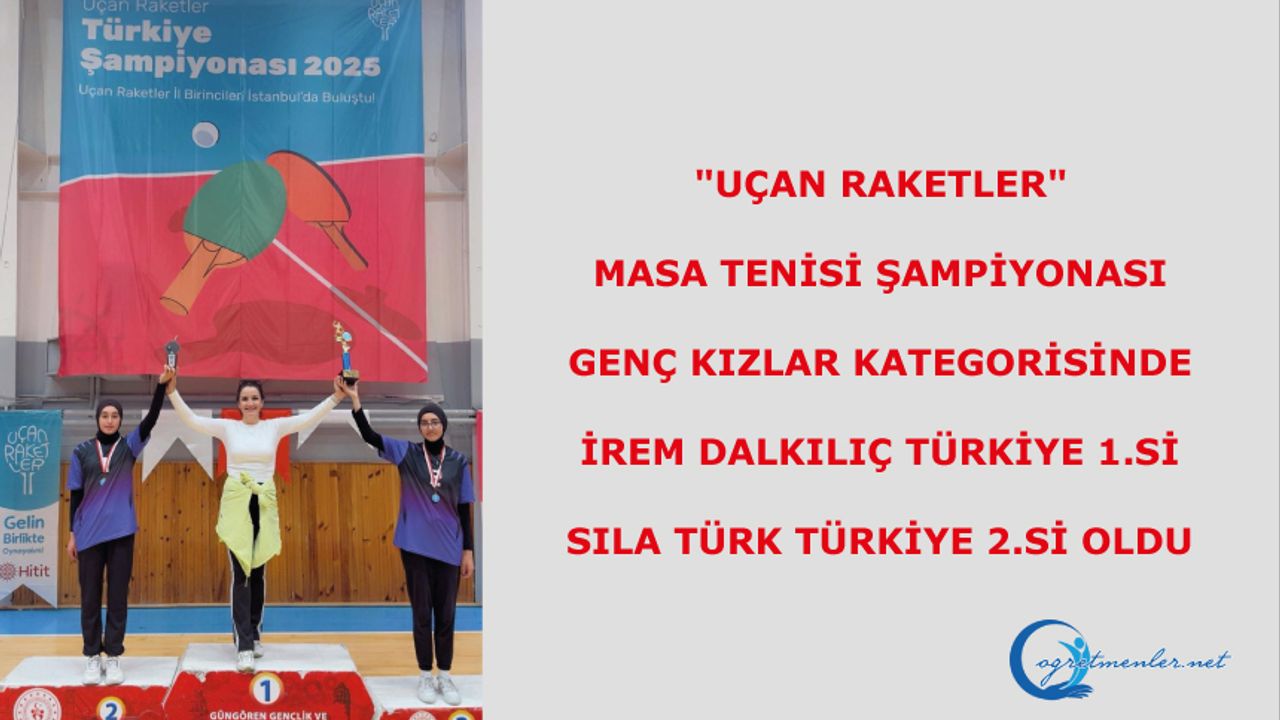 Okulumuz Durdu-Muzaffer Marşap Kız Anadolu İmam Hatip Lisesi öğrencileri İrem DALKILIÇ ve Sıla TÜRK, okulumuz Beden Eğitimi Öğretmeni Şeyma AYDIN yönetiminde İstanbul'da katıldıkları masa tenisi yarışmasında göğsümüzü kabarttı. Türkiye Masa Tenisi Federasyonunun düzenlediği "Uçan Raketler" Masa Tenisi Şampiyonası genç kızlar kategorisinde öğrencimiz İrem DALKILIÇ Türkiye 1.si, Sıla TÜRK Türkiye 2.si olarak hem okulumuzun hem Kırşehir'imizin gururu oldu. Öğrencilerimizi, beden eğitimi öğretmenimizi ve bu önemli başarıda emek harcayan herkesi kutluyoruz.