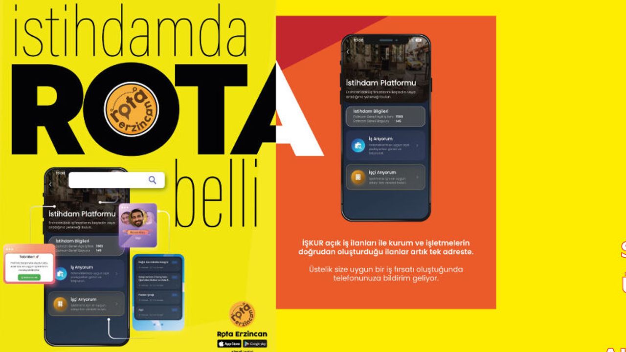 Rota Erzincan mobil uygulaması üzerinden erişime açılan İstihdam Portalı ile iş arayan vatandaşlarımız ve personel arayışında olan işletmeler artık aynı platformda buluşuyor.