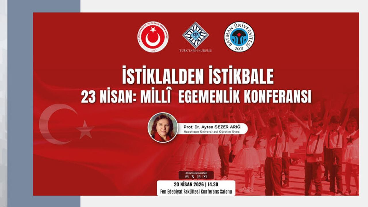 TBMM’nin açılışının 106’ncı yıl dönümünü Batman’da konferans ve sergi açılışı ile kutluyoruz! Kurumumuz ve Batman Üniversitesi tarafından 20 Nisan 2026 tarihinde düzenlenecek “İstiklalden İstikbale Millî Egemenlik” başlıklı sergi ile Prof. Dr. Ayten Sezer Arığ tarafından verilecek olan “Millî Egemenlik Konferansı”na davetlisiniz.
