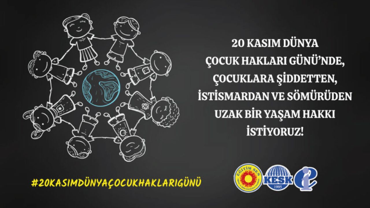 Eğitim Sen olarak, tüm çocukların 20 Kasım Dünya Çocuk Hakları Günü’nü kutluyor; hakları için mücadele eden, sesini yükselten tüm çocukların yalnız olmadıklarını bir kez daha belirtiyoruz.