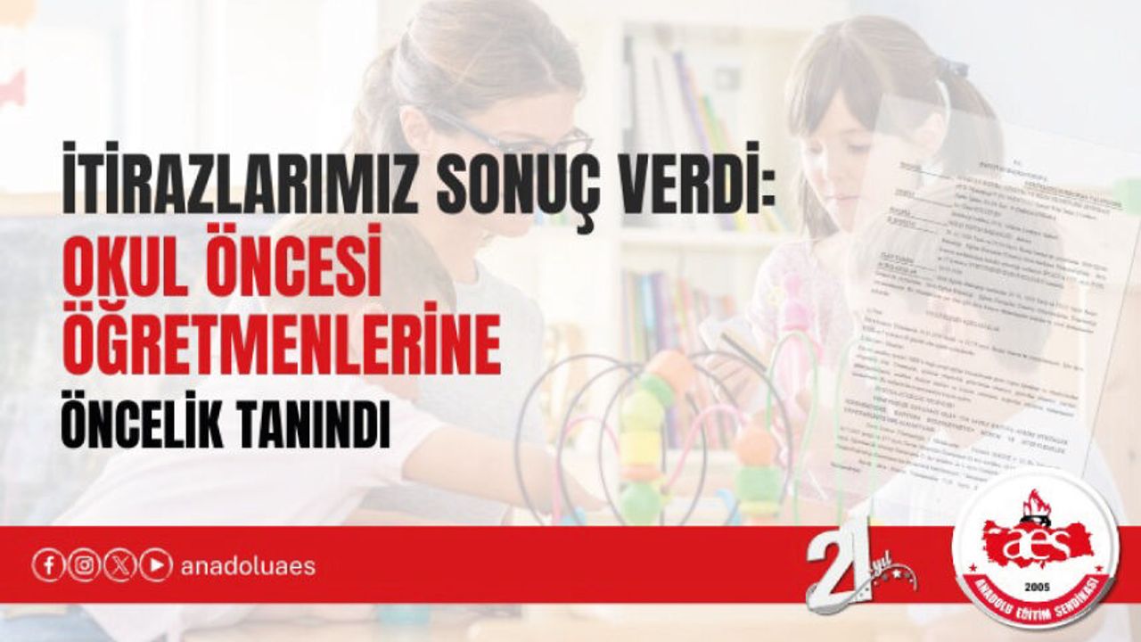 Yapılan yeni düzenleme ile okul öncesi öğretmenlerimizin mağduriyeti büyük ölçüde giderilmiş ve atamalarda okul öncesi öğretmenlerine öncelik tanınması hükme bağlanmıştır.