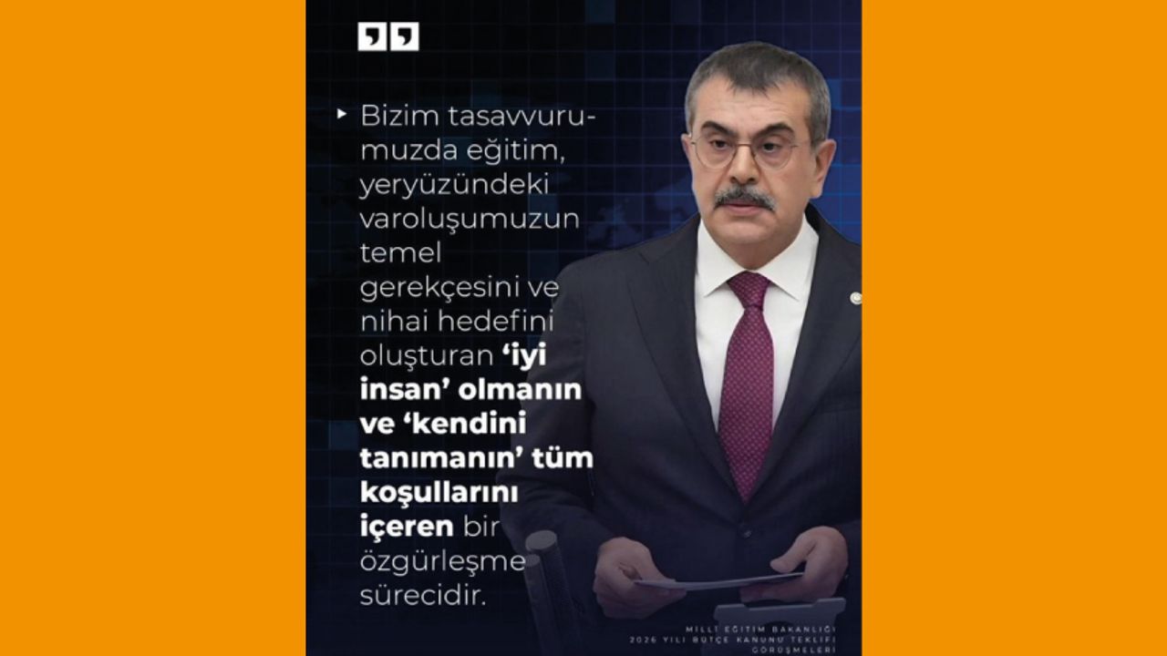 Milli Eğitim Bakanımız Yusuf Tekin: "Bizim tasavvurumuzda eğitim, yeryüzündeki varoluşumuzun temel gerekçesini ve nihai hedefini oluşturan ‘iyi insan’ olmanın ve ‘kendini tanımanın’ tüm koşullarını içeren bir özgürleşme sürecidir…" 2026 Yılı Bütçe Kanunu Teklifi Görüşmeleri