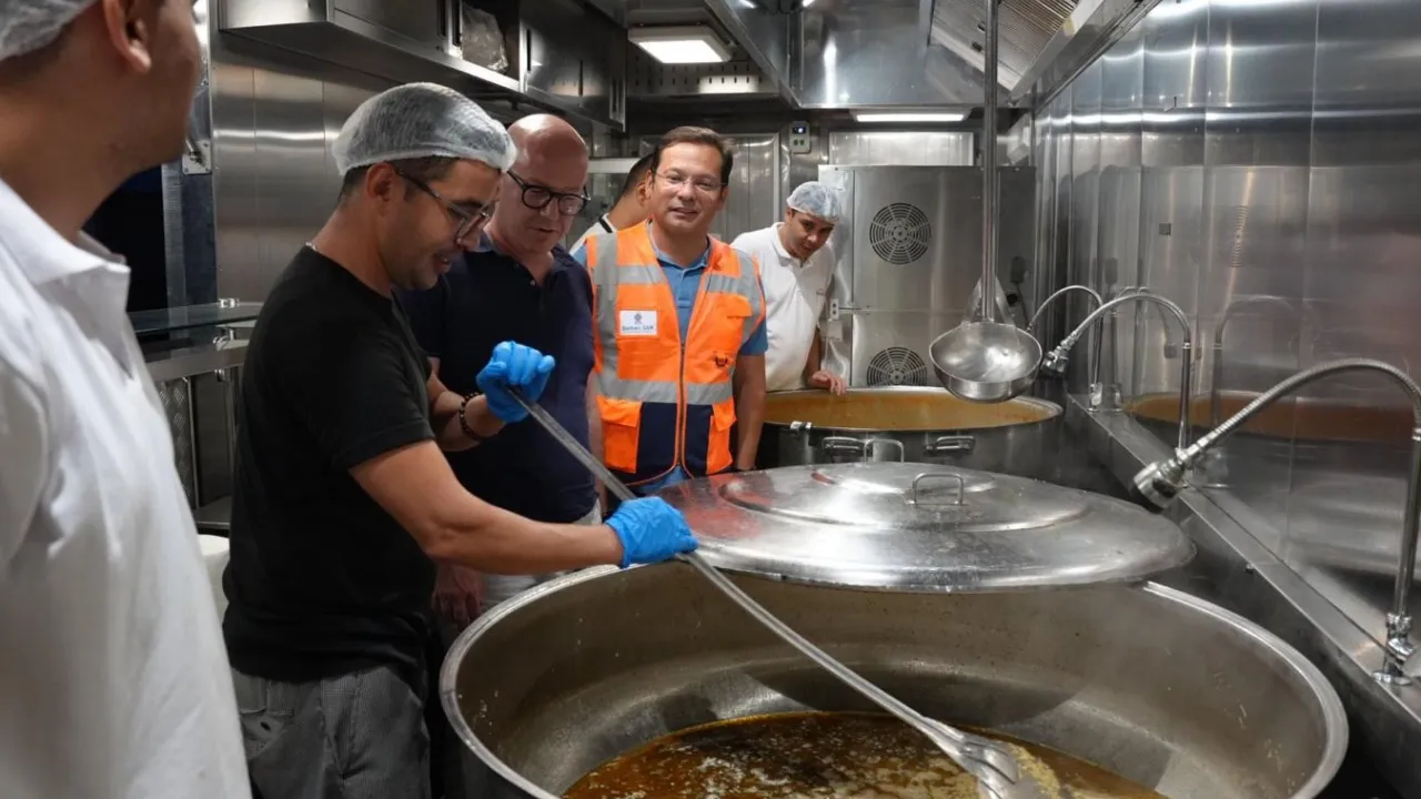 İzmir Büyükşehir Belediyesi Sosyal Hizmetler Dairesi Başkanlığı Aşevleri Şube Müdürlüğü’nde aşçı olarak görev yapan Mehmet Orhan, “Bir nebze de olsa vatandaşlarımızın yaralarını sarmaya geldik. Sabah öğle akşam olmak üzere günlük 6 bin kişilik yemek üretimini ve dağıtımını yapıyoruz. Depremden zarar gören vatandaşlarımıza geçmiş olsun. Biz varız, her zaman yanınızdayız” dedi.