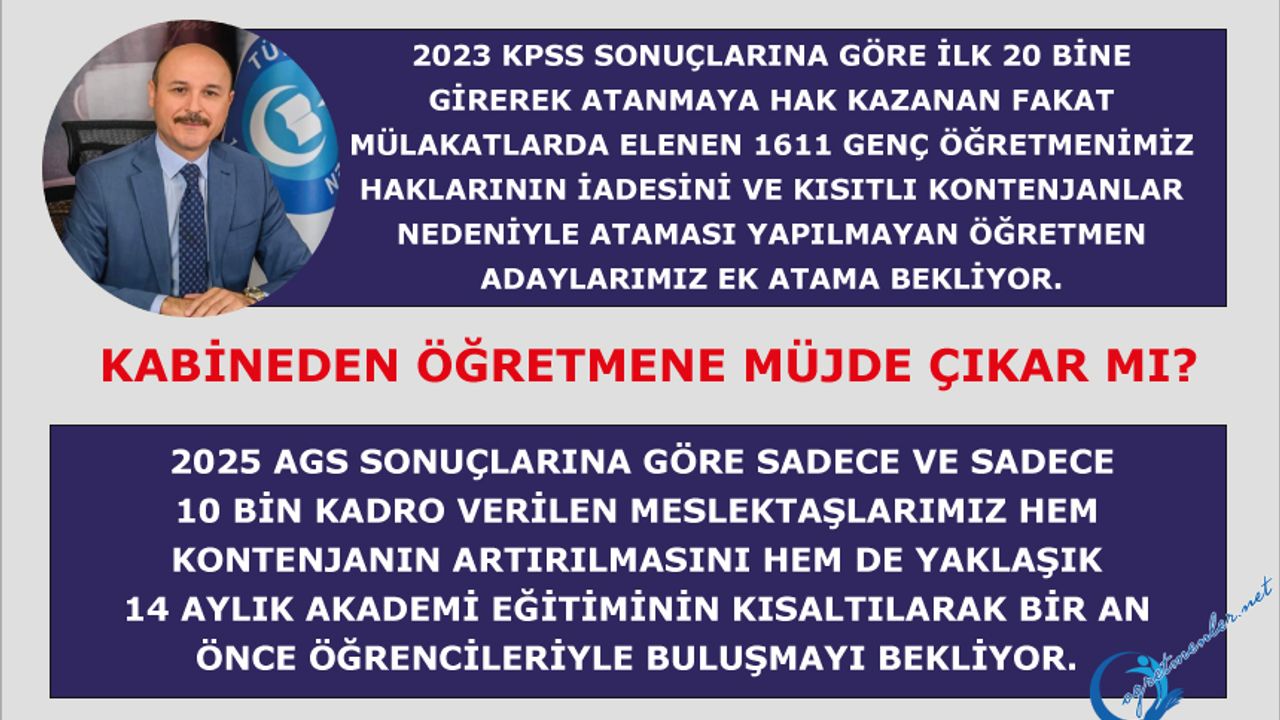 2025 AGS sonuçlarına göre sadece ve sadece 10 bin kadro verilen meslektaşlarımız hem kontenjanın artırılmasını hem de yaklaşık 14 aylık akademi eğitiminin kısaltılarak bir an önce öğrencileriyle buluşmayı bekliyor.
