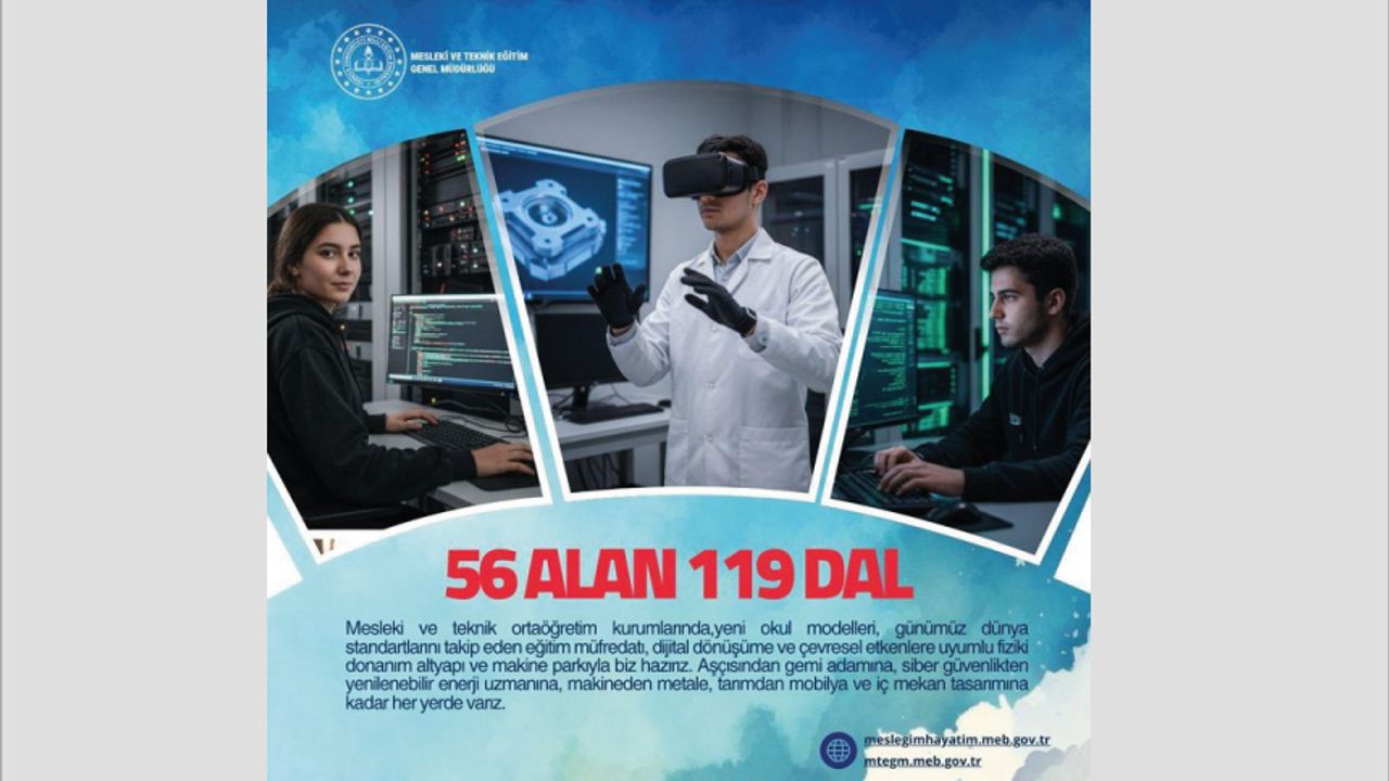 Sevgili Gençler, Kadim geleneğimizden ilham alarak geleceğin mesleklerini inşa ediyoruz. 56 Alan ve 119 Dalımızla; Günümüz dünya standartlarını takip eden eğitim müfredatı, Dijital dönüşüme ve çevreye uyumlu fiziki altyapımızla gençlerimizi yükseköğrenime ve istihdama hazırlıyoruz.