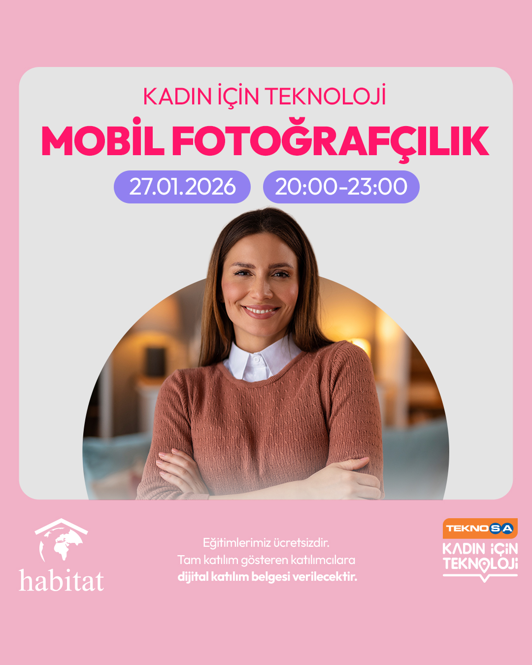 Bu doğrultuda, kadınlara dijital beceriler kazandırmayı ve teknoloji ile güçlenmelerini sağlamayı amaçlayan Mobil Fotoğrafçılık Eğitimi, çevrim içi olarak gerçekleştirilecektir.