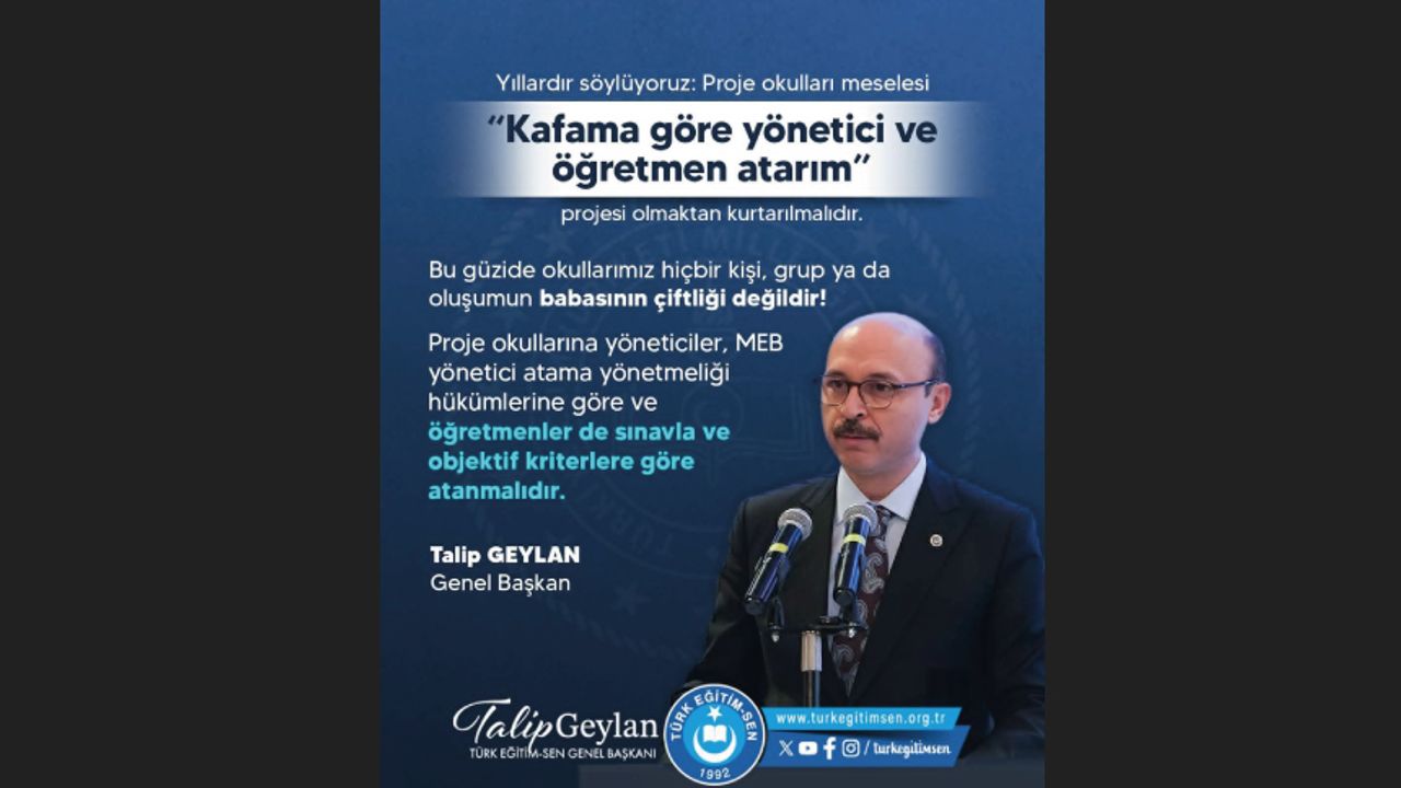 Türk Eğitim Sen @turkegitimsen Proje Okulları "Kafama göre yönetici ve öğretmen atarım" projesi olmaktan kurtarılmalıdır.
