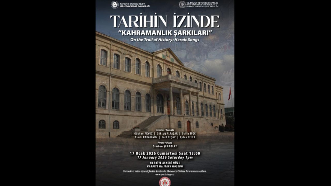 Harbiye Askerî Müzesi / İstanbul 17 Ocak 2026 13.00 Millî Savunma Bakanlığı ile Kültür ve Turizm Bakanlığı arasında yapılan protokol kapsamında Devlet Opera ve Balesi tarafından Tarihin İzinde "Kahramanlık Şarkıları" müze konseri icra edilecek. Konser, müze ziyaretçilerine ücretsizdir. #MillîSavunmaBakanlığı