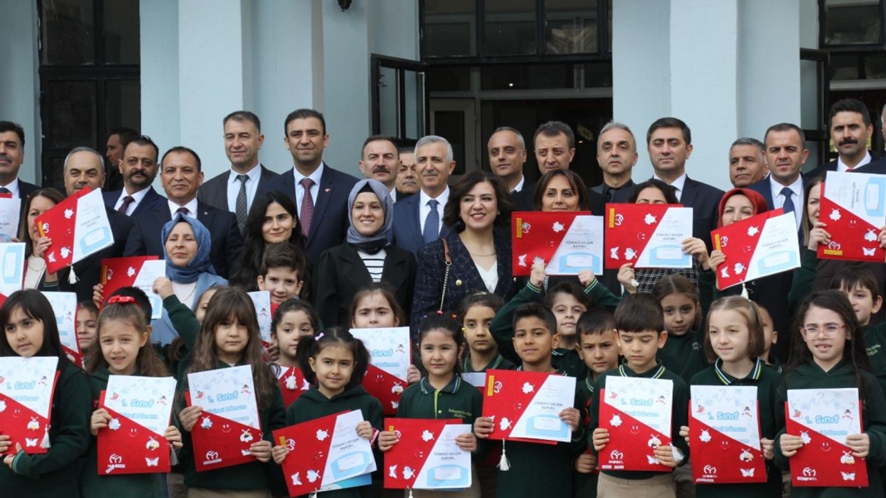 Kahramanmaraş Valisi Sayın Mükerrem Ünlüer, Ölçme, Değerlendirme ve Sınav Hizmetleri Genel Müdürü Sayın Erdal Kılınç, Sınav Yönetimi Daire Başkanı Sayın Fatih Türkhan, Kahramanmaraş İl Millî Eğitim Müdürü Sayın Erhan Baydur, Dulkadiroğlu Kaymakamı Sayın Hicabi Aytemur, Onikişubat Kaymakamı Sayın Salih Çiğdem Onikişubat Bahaettin Karakoç İlkokulunda gerçekleştirilen törene katılarak öğrencilerin karne heyecanını paylaştılar. Törende öğrencilerle bir araya gelen Genel Müdürümüz, dönem boyunca gösterdikleri gayret ve başarılarından dolayı öğrencileri tebrik ederek öğrencilere iyi tatiller diledi; öğretmen ve okul yöneticileriyle de görüşerek eğitim öğretim sürecinde yürütülen çalışmalara ilişkin değerlendirmelerde bulunup emeği geçen tüm eğitim camiasına teşekkür etti.