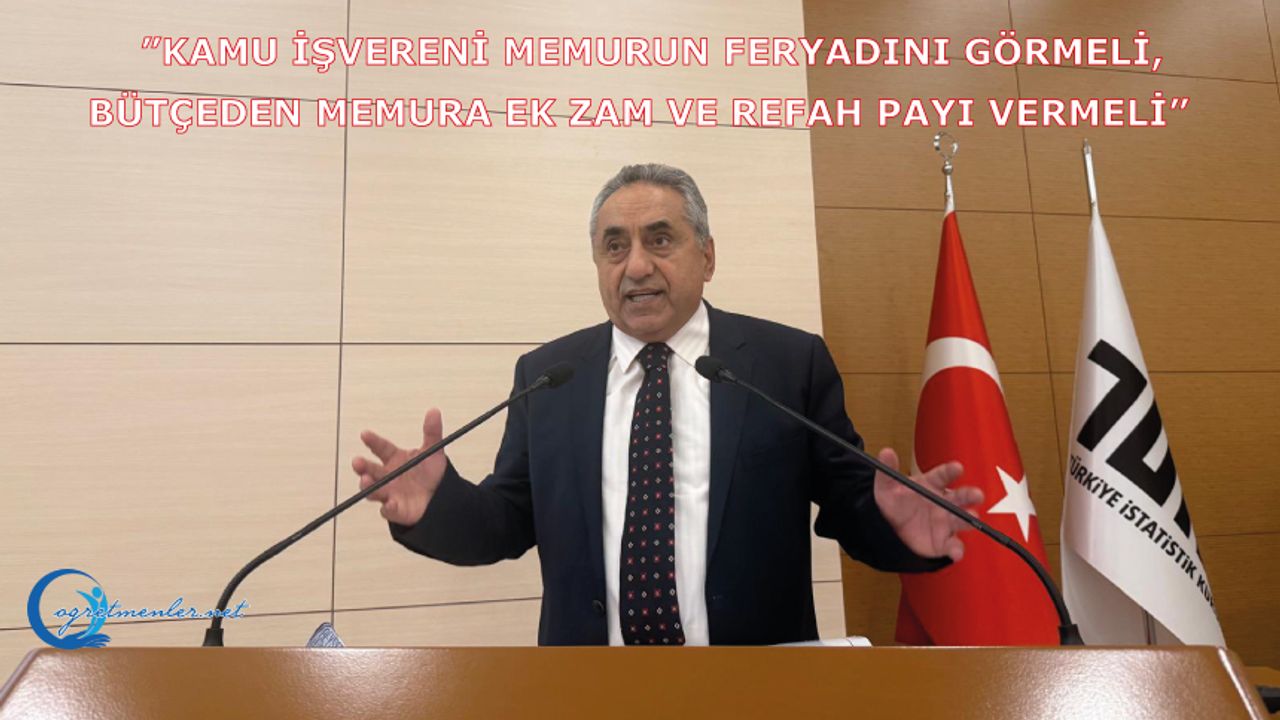 ”KAMU İŞVERENİ MEMURUN FERYADINI GÖRMELİ, BÜTÇEDEN MEMURA EK ZAM VE REFAH PAYI VERMELİ”