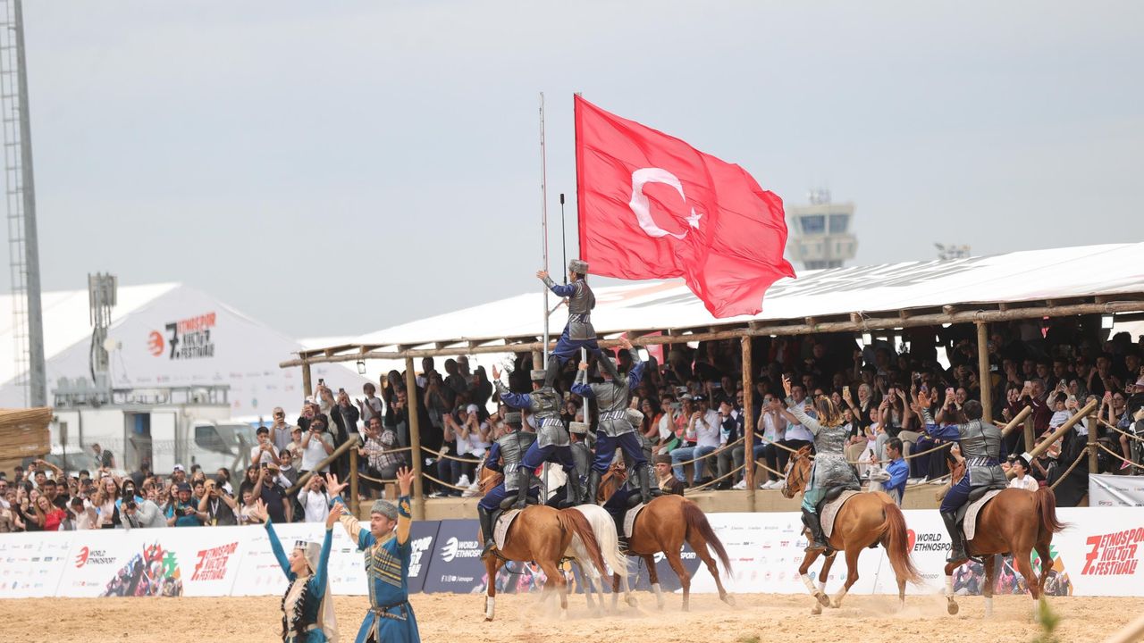 7’nci Etnospor Kültür Festivali’nde gönüllere işleyen Karabağ Atları’nın eşsiz gösterisi… Bir milletin kültürü, diğerinin yüreğinde yankı buldu bugün. İki devlet, bir millet; kültürde, yürekte ve gelecekte daima bir bütün.