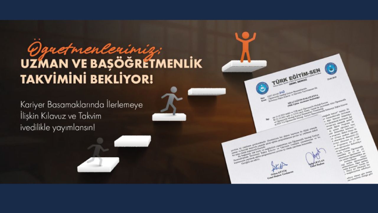 Bu bağlamda, hak kaybı ve mağduriyet yaşanmaması için Öğretmenlik Mesleği Kariyer Basamaklarında İlerlemeye İlişkin Kılavuz ve Takvimin ivedilikle yayımlanması ve bu kapsamında yapılacak eğitim programlarının çevrim içi olarak yapılması hususunda MEB’e talepte bulunduk.