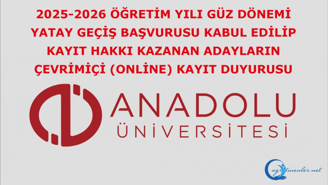 Anadolu Üniversitesinin Açıköğretim Fakültesi ön lisans ve lisans programlarına 2025-2026 öğretim yılı yatay geçiş kayıt hakkı kazanan adayların,
