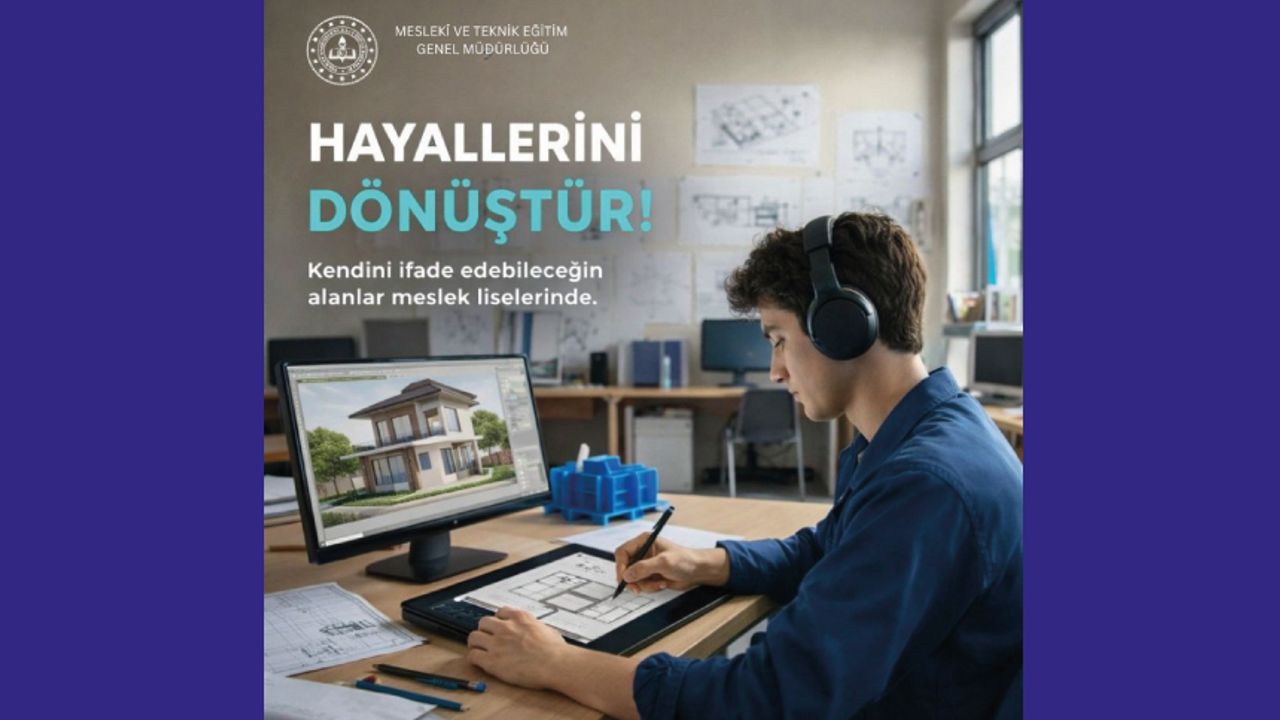 Hayallerini Dönüştür! Mesleki ve teknik ortaöğretim kurumlarında gençler; tasarlıyor, üretiyor ve hayallerini somut projelere dönüştürüyor. Teknolojiyle, emekle ve bilgiyle geleceğini kendi elleriyle inşa ediyor. Kendini ifade edebileceğin alanlar meslek liselerinde. http://meslegimhayatim.meb.gov.tr http://mtegm.meb.gov.tr #MeslekiveTeknikEğitim #MTEGM #HayalleriniDönüştür #ÜretenGençlik #GelecekMeslekleKurulur