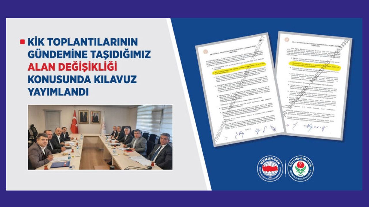MEB Kurum İdari Kurulu (KİK) toplantılarının sürekli olarak gündemine taşıdığımız öğretmenlerin alan değişikliği talepleri konusunda duyuru ve kılavuz yayımlandı.