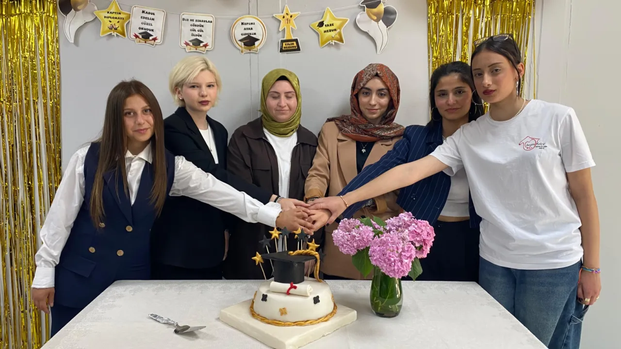 Beyaz Kalpler Eğitim ve Gelişim Merkezi’nde düzenlenen mezuniyet törenine mezun öğrenciler, aileleri ve merkez personeli katıldı. Törende öğrenciler, mezuniyet sertifikalarını Sosyal Hizmetler Şube Müdürü İrfan Türkmen’in elinden aldı. Törene renk katan bir diğer detay ise pastacılık bölümü öğrencilerinin hazırladığı ikramlar ve müzik atölyesi öğrencilerinin sunduğu müzik dinletisi oldu. Mezuniyet töreni, hatıra fotoğrafı çekimi ile sona erdi.