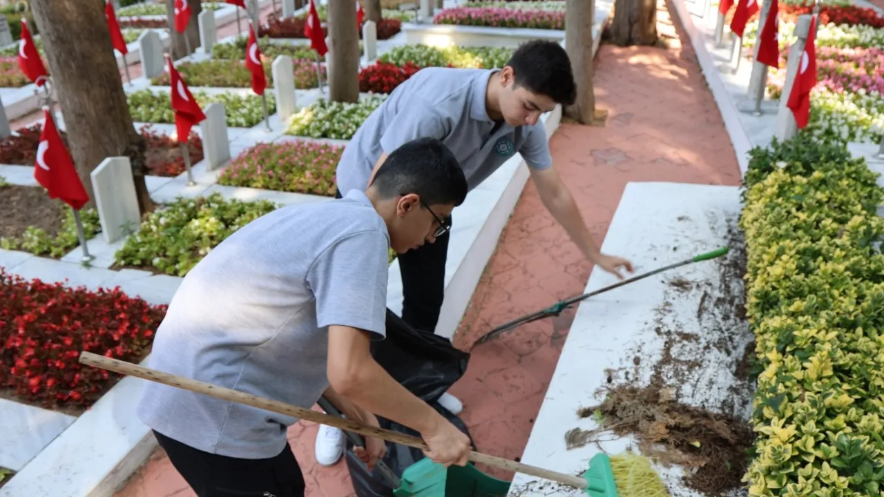KOCAELİ (İGFA) - Kocaeli Büyükşehir Belediyesi Park ve Bahçeler Dairesi Başkanlığı’na bağlı Mezarlıklar Şube Müdürlüğü’nün organizasyonunda Bağçeşme Namazgâh Şehitliği’nde anlamlı bir etkinlik yapıldı. Necip Fazıl Kısakürek Anadolu İmam Hatip Lisesi öğrencilerinden gelen talep üzerine düzenlenen ziyarette gençler, hem şehitlerimizi dualarla andı hem de temizlik çalışmasına katılarak örnek bir davranış sergiledi.