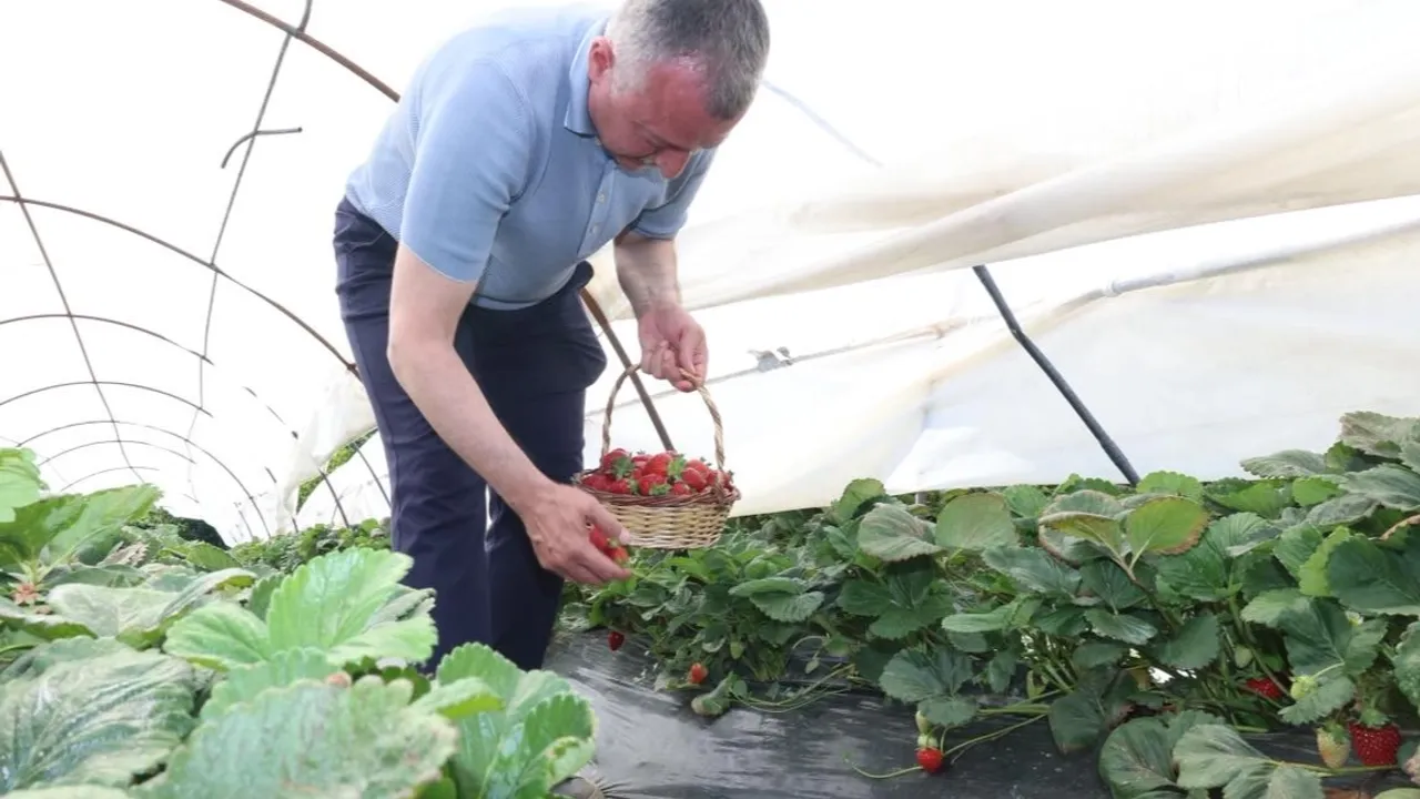 Kocaeli Büyükşehir Belediye Başkanı Doç.Dr.Tahir Büyükakın, Büyükşehir’in “Alternatif Ürün Yetiştiriciliğini Destekleme Projesi” kapsamında yüzde 50 hibeli ekipman desteği alan üreticilerin yetiştirdiği çileklerin hasadını Karamürsel Akçat Mahallesi’nde gerçekleştirdi.KOCAELİ (İGFA) - Kocaeli Büyükşehir Belediye Başkanı Doç.Dr.Tahir Büyükakın, Karamürsel Akçat Mahallesi’nde çilek hasadına katıldı.