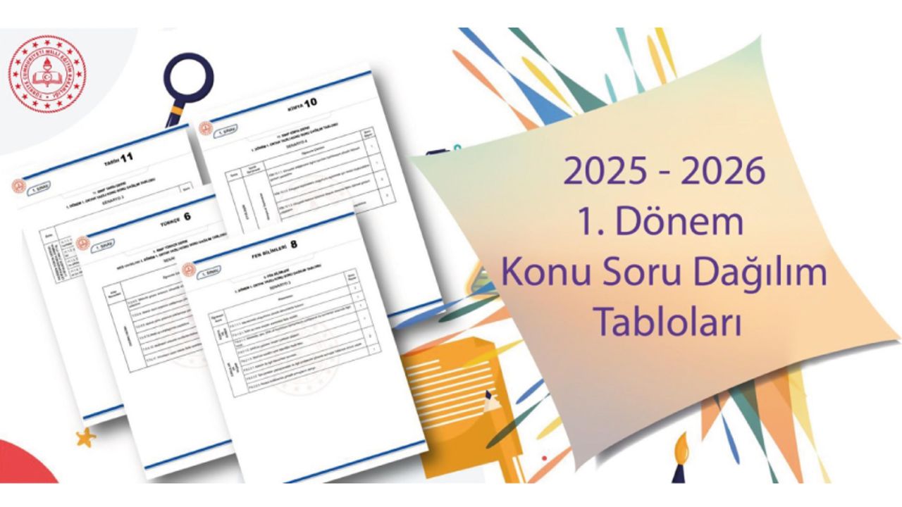 Bu kapsamda, 2025-2026 eğitim öğretim yılı dönem başında il sınıf/alan zümreleri tarafından Ölçme Değerlendirme Merkezi Müdürlüğünün görüşü alınarak konu soru dağılım tablolarına örnek oluşturması açısından temel eğitim ve ortaöğretimdeki farklı branş ve sınıf düzeylerinde "konu soru dağılım tabloları" yayımlandı.