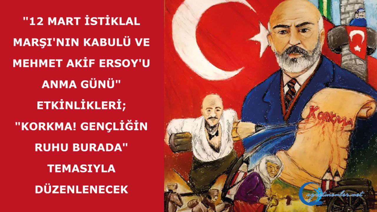 Bu yıl “12 Mart İstiklâl Marşı’nın Kabulü ve Mehmet Akif Ersoy’u Anma Günü” etkinliklerini; “Korkma! Gençliğin Ruhu Burada” temasıyla düzenleyeceğiz.