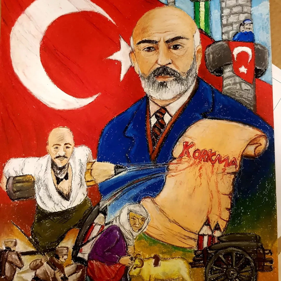 12 mart istiklal marşının kabulü " Bir yıldız, bir hilal ilelebet istiklal " konulu resim yarışmasında Mehmet Akif Ersoy Ortaokulu 7/F sınıfı öğrencisi Berra Menar kızımız il 2.si oldu.