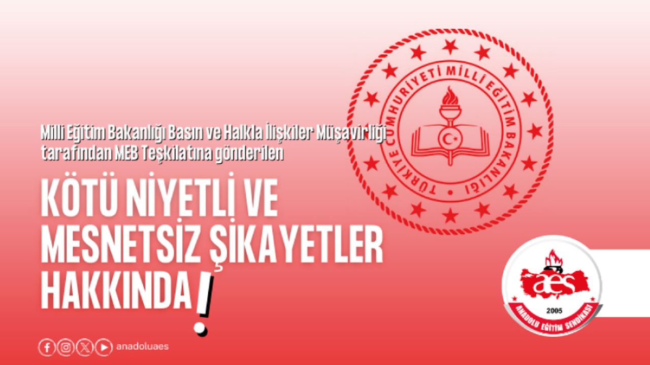 Milli Eğitim Bakanlığı Basın ve Halkla İlişkiler Müşavirliği tarafından MEB Teşkilatına gönderilen “Kötü Niyetli Ve Mesnetsiz Şikayetler Hakkında” konulu yazı hakkında bilgilendirme: