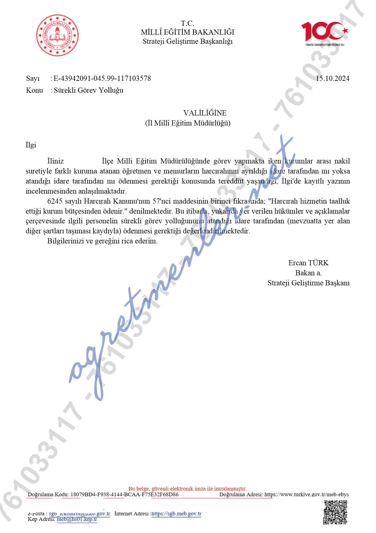 Milli Eğitim Bakanlığı Strateji Geliştirme Başkanlığının 15.10.2024 tarih ve 117103578 sayılı görüş yazısında;