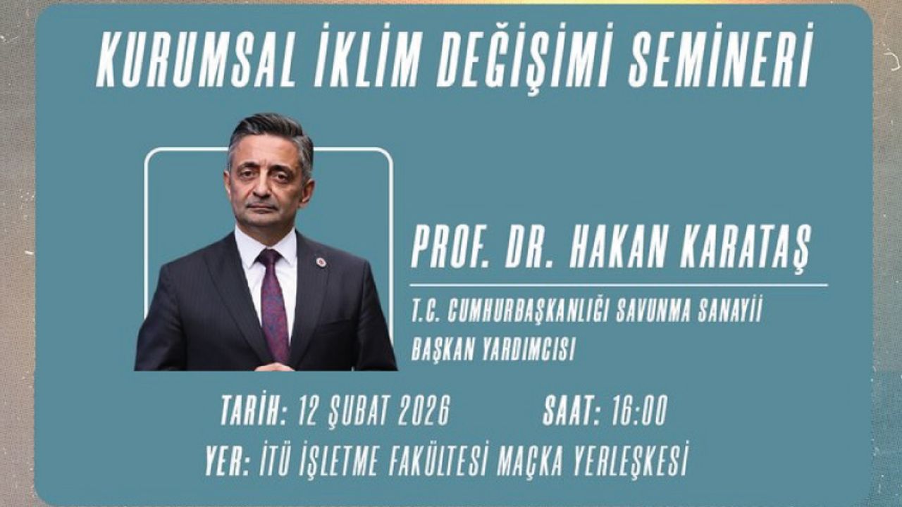 @itu1773iş birliğiyle yürüttüğümüz Savunma Sanayiinde İşletme (MBA) Programı kapsamında@SavunmaSanayiiBaşkan Yardımcısı@drhkaratas'ın “Kurumsal İklim Değişimi” temalı seminerinde buluşuyoruz. İTÜ İşletme Fakültesi ev sahipliğinde gerçekleşecek seminere İstanbul Teknik Üniversitesi’nin tüm öğrencileri davetlidir. Tarih: 12 Şubat 2026 Saat: 16.00 Yer: İTÜ İşletme Fakültesi Maçka Yerleşkesi #MilliYetkinlikHamlesi #SavunmaSanayiindeİşletme