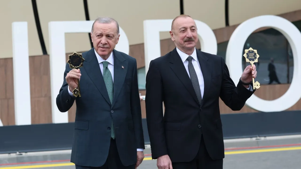 Cumhurbaşkanı Erdoğan, Azerbaycan Cumhurbaşkanı Aliyev ile Laçın Uluslararası Havalimanı'nın açılışını gerçekleştirdi. Azerbaycan’ın en yüksek rakımlı havalimanı olma özelliği taşıyan havalimanının açılış kurdelesini kesen Cumhurbaşkanı Erdoğan ve Azerbaycan Cumhurbaşkanı Aliyev'e, havalimanının sembolik anahtarları takdim edildi.ANKARA (İGFA) - Cumhurbaşkanı Recep Tayyip Erdoğan, Azerbaycan Bağımsızlık Günü münasebetiyle Azerbaycan'ın Laçın şehrinde temaslarda bulunuyor.