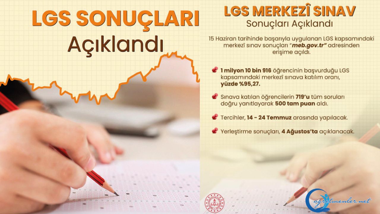 Liselere Geçiş Sistemi (LGS) kapsamındaki merkezi sınav sonuçlarına göre 719 öğrenci, tüm soruları doğru yanıtlayarak 500 tam puan aldı.