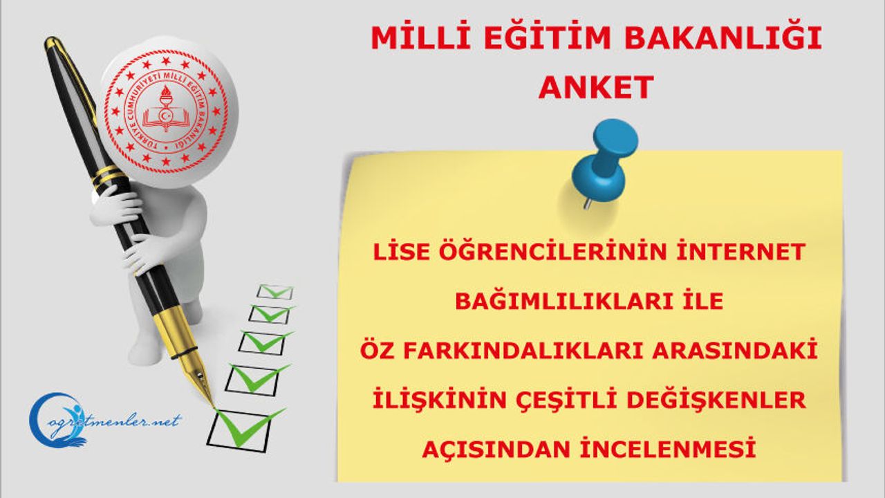 Bu araştırma, lise öğrencilerinin internet bağımlılık düzeyleri ile öz farkındalık düzeyleri arasındaki ilişkiyi incelemek amacıyla yürütülmektedir. Çalışma, Millî Eğitim Bakanlığı Uzmanlık Tezi kapsamında gerçekleştirilmektedir. Anket kapsamında yer alan sorular yalnızca bilimsel amaçla kullanılacak olup verdiğiniz yanıtlar gizli tutulacak ve kişisel bilgileriniz hiçbir şekilde paylaşılmayacaktır. Formda doğru ya da yanlış cevap yoktur; sizden beklenen, her ifadeyi dikkatlice okuyarak kendinize en uygun seçeneği işaretlemenizdir. Araştırmaya katılım tamamen gönüllülük esasına dayanmaktadır ve dilediğiniz zaman ankete katılmaktan vazgeçebilirsiniz. Elde edilen veriler yalnızca araştırma amacıyla değerlendirilecek, bireysel sonuçlar raporlanmayacaktır. Katkılarınız için teşekkür ederiz.