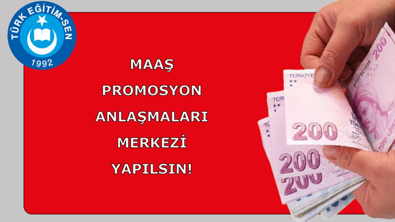 Genel Başkanımız Talip Geylan, eğitim çalışanlarının banka maaş promosyon anlaşmalarında iller ve hatta ilçeler arasında büyük farklılıklar oluştuğunu söyleyerek, Milli Eğitim Bakanlığı tarafından tüm personel adına merkezi şekilde promosyon anlaşması yapılmasını istedi.