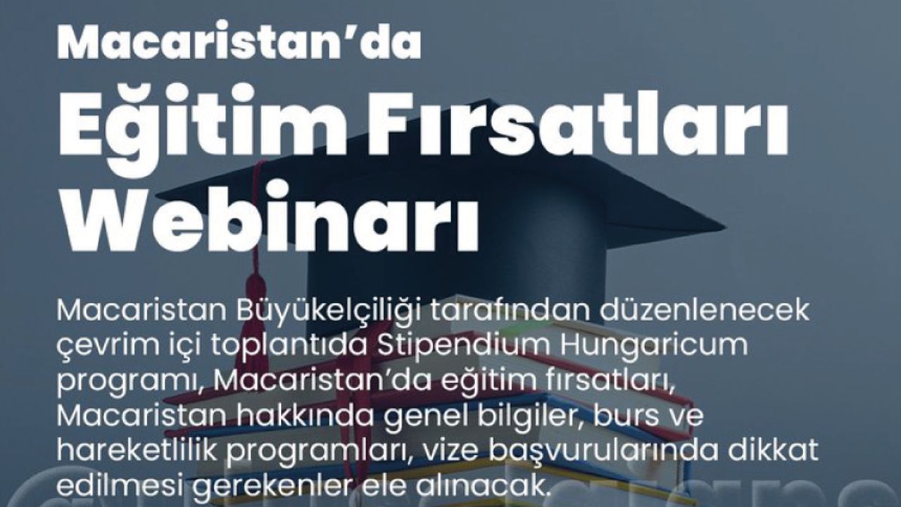 Macaristan Büyükelçiliği tarafından, Stipendium Hungaricum burs programının tanıtımına yönelik, 2 Temmuz 2025'te saat 10:00’da Zoom üzerinden çevrim içi toplantı düzenlenecektir. Programda başta Stipendium Hungaricum programı olmak üzere Macaristan'da burs fırsatları ve Macaristan'a hareketlilik düzenleyecek kişiler için vize başvurularında dikkat edilmesi gereken hususlar aktarılacaktır. Etkinliğe katılmak isteyenlerin, 30 Haziran 2025 tarihine kadar [email protected] adresine e-posta yoluyla bildirimde bulunmaları gerekmektedir.
