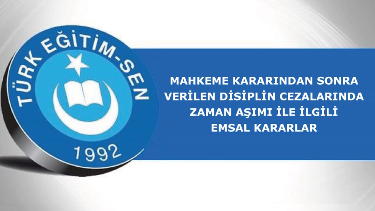 Türk Eğitim Sen avukatlarınca sendikamız üyesine tecziye edilen disiplin cezalarının iptali istemiyle açılan davalarda, disiplin cezasının yargı kararıyla usul yönünden hukuka aykırı bulunarak iptal edilmesi hâlinde, kararın idareye ulaştığı tarihten itibaren kalan disiplin ceza zamanaşımı süresi içerisinde disiplin cezası verilebileceği, zamanaşımı süresinin dolması veya üç aydan daha az süre kalması hâlinde ise en geç üç ay içerisinde yeniden disiplin cezası tesis edilebileceği, bu süreler geçtikten sonra tecziye edilen cezalarda hukuka uyarlık bulunmadığı belirtilerek iptal kararları verilmiştir.